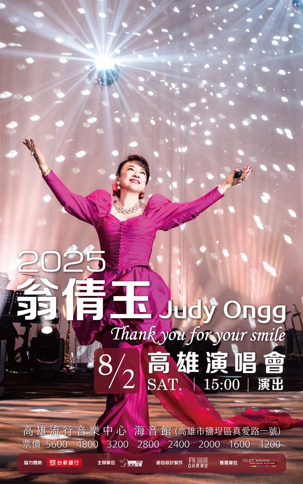 《Thank you for your smile》演唱會將於8月2日下午3點,在高雄流行音樂中心海音館登場。門票已於年代售票系統熱賣中,全台便利商店亦可購票。這將是一場融合音樂、藝術的溫暖演出,邀請所有樂迷與家人一同走進屬於翁倩玉、也屬於我們的經典年代。
