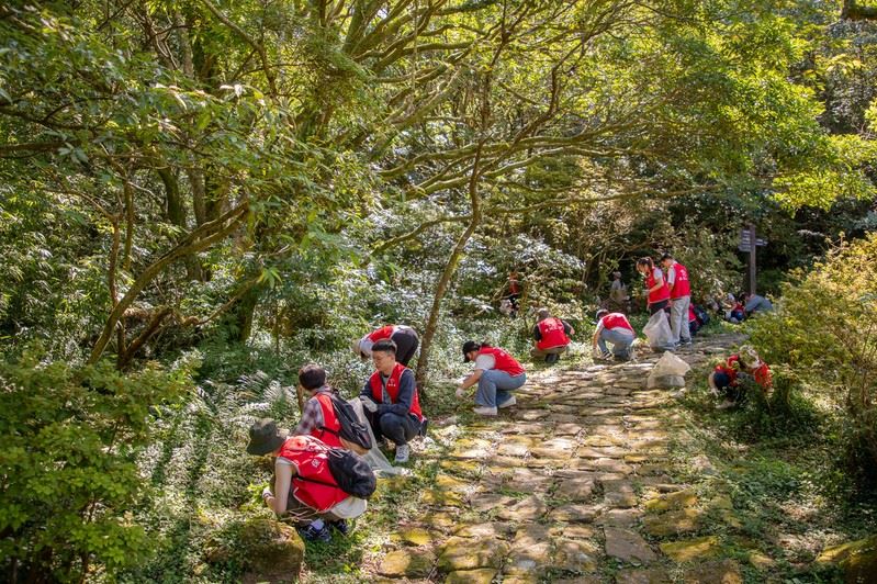 保誠人壽號召員工及眷屬走進陽明山大屯自然公園,共同移除外來種巴西水竹葉,守護台灣原生生態